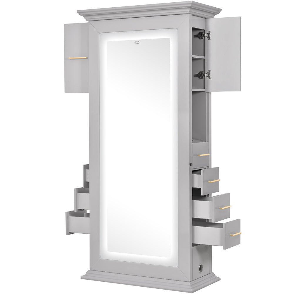 Illuminate your workspace with our LED Salon Styling Station! This revolutionary feature not only enhances visibility but also adds a touch of glamour to your salon environment. The LED-illuminated mirror ensures impeccable precision during every hairstyle creation.