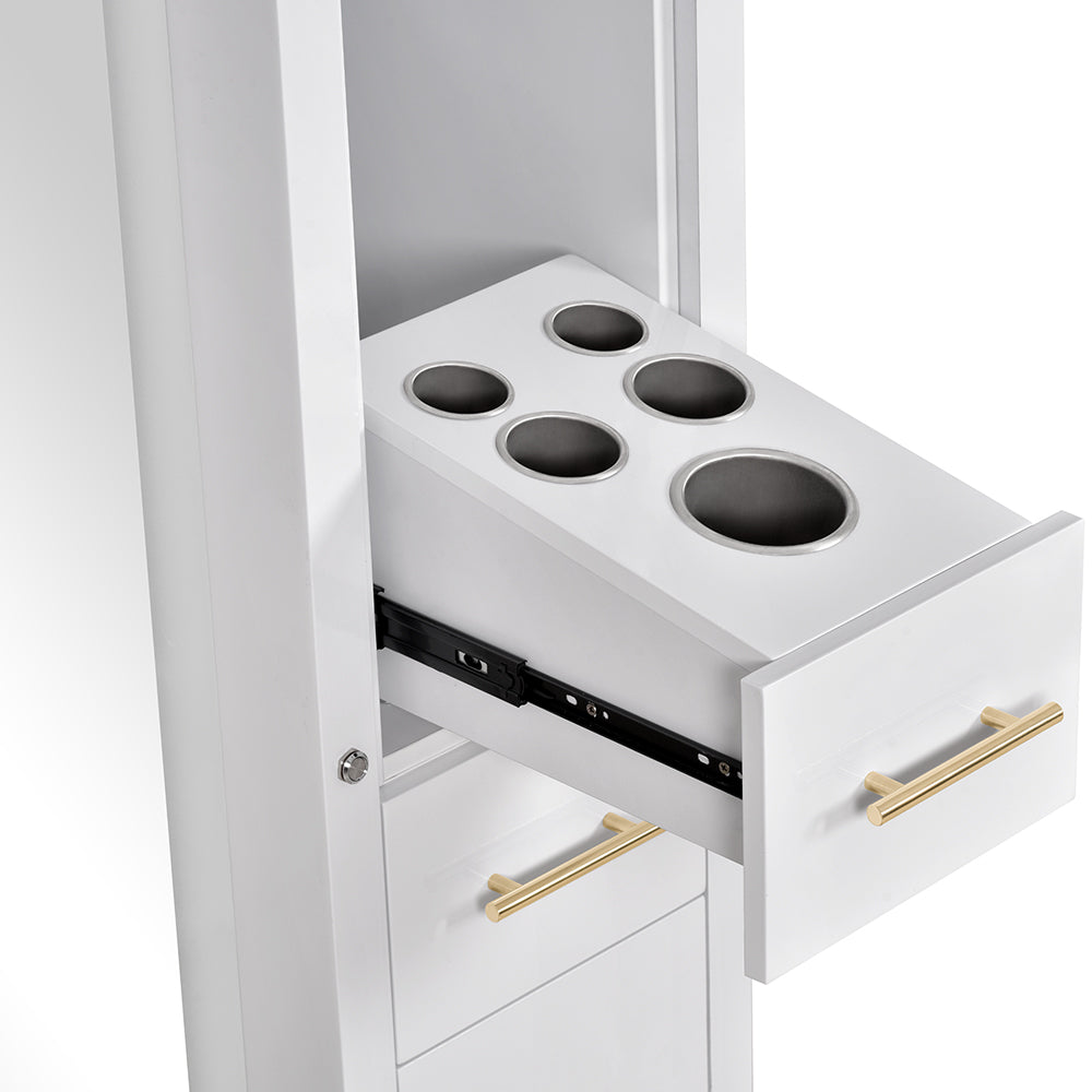 Organizing tools has never been easier, thanks to our innovative salon station organizer system. Shop our Adonis III styling stations for sale, keep all your essentials neatly arranged, and avoid time-consuming searches for equipment in the middle of appointments. Efficiency meets professionalism at its finest!