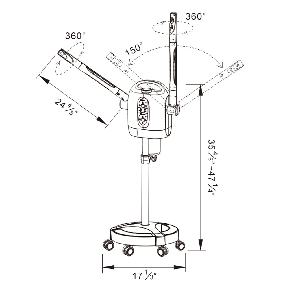 - Fully Adjustable & 360° Rotatable Arm: Equipped with a rotating head and a 360-degree rotatable nozzle, allowing therapists to direct steam precisely from any angle. The adjustable nozzle height accommodates various treatment positions.