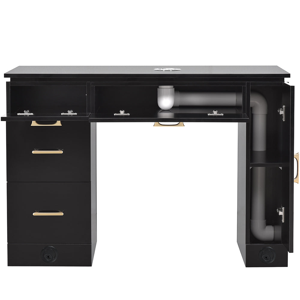 Crafted from high-quality materials, Avalon manicure desks offer ample storage capacity to keep all your essential tools organized and within easy reach. The sleek design of this nail table with vent complements any spa or salon décor while providing unparalleled comfort during services. Ideal for salons specializing in manicures, pedicures, or nail artistry, this table is not just a piece of furniture; it’s an investment in excellence.