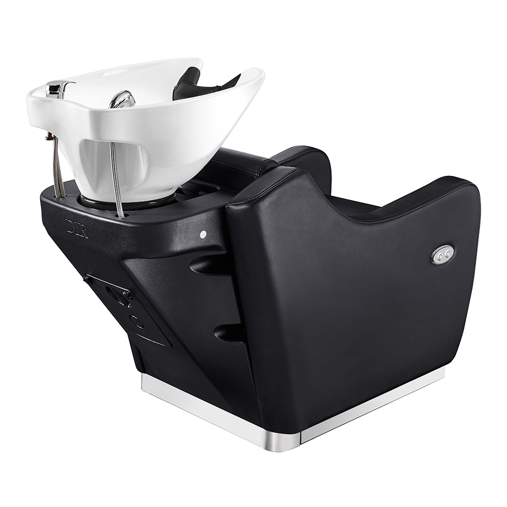 DIR electric shampoo station Callisto combines modern European design with superior comfort level; this electric shampoo chair utilizes remote controlled leg-rest adjustment for convenient operation. This shampoo chair with leg rest is fitted with a tilting ceramic sink to accommodate clients of all sizes, back or side-wash plumbing access makes this unit a perfect fit for all salon shampoo areas.