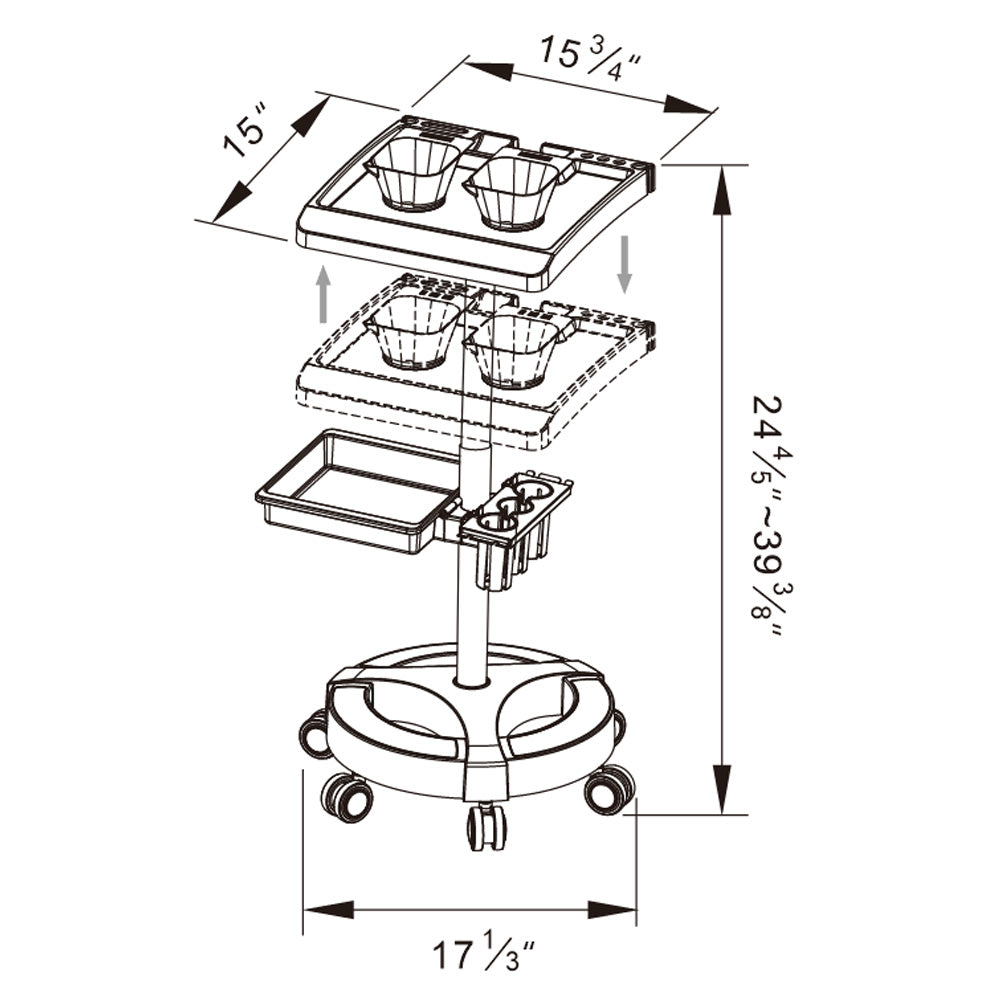 All-in-One Mobile Station: The ultimate salon trolley cart that integrates a spacious salon color tray, multiple compartments, and holders for bottles, tools, and accessories.