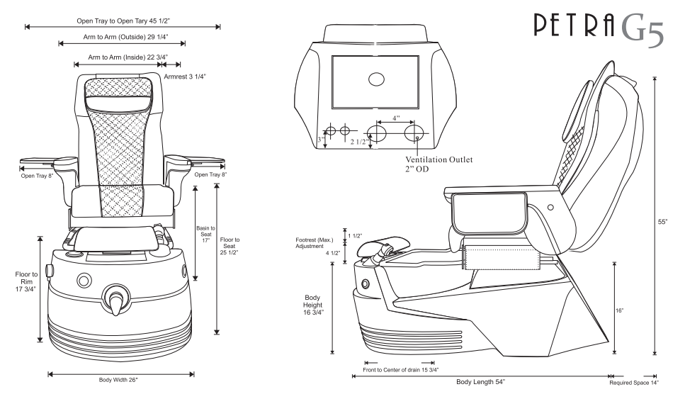 - Spa controls and sperate chair remote on base for technician’s ease.