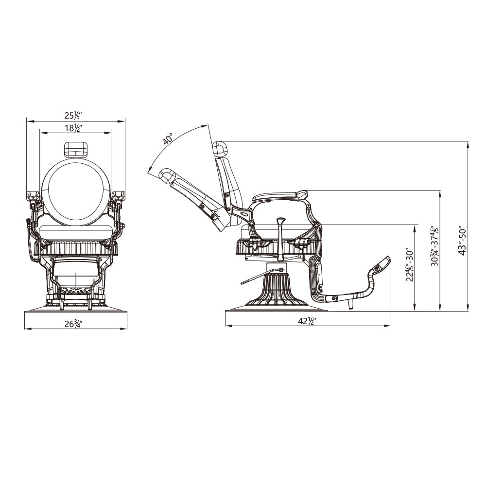 The DIR men's barber chair vintage Mikado blends a contemporary European design with the perfection of skilled craftsmanship. This reclining barber chair with a footrest features a high-quality, antique detailed metal frame with a chrome finish and superior faux leather covering. Browse our retro barber chairs for sale and professional barber chairs for sale today!
