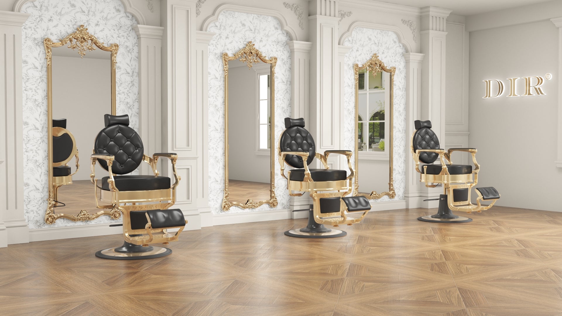 Princeton professional gold barber chairs are an immediate eye catcher that stand out in any barber equipment package. With its polished, gold-toned finish and striking design incorporating both modern and vintage barber styling chair aesthetics, the Princeton barber chair is sure to make an indelible impression in any barbershop furniture lineup. The Princeton II truly distinguishes itself from the standard reclining barber chair for sale. This heavy-duty barber chair is crafted to exacting precision, supported by an ornate all-metal frame and ensconced in sumptuous cushioning, while featuring full adjustability from headrest to base. Be sure to browse DIR’s wide selection of barber stations and other barber shop chairs for sale.